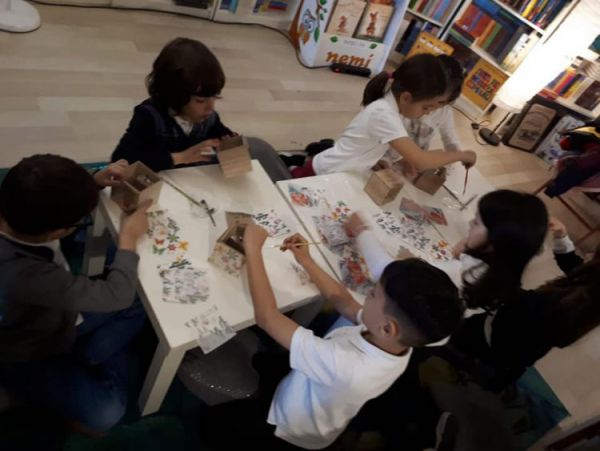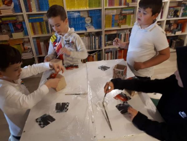 Elevii clasei pregătitoare A au celebrat astăzi Ziua Internațională a Cărții pentru Copii printr-o activitate practică în cadrul librăriei Dorian Gray Constanța realizând suporturi pentru creioane prin tehnica șervețelului.