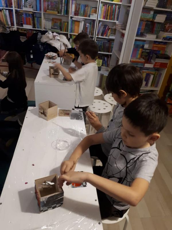 Elevii clasei pregătitoare A au celebrat astăzi Ziua Internațională a Cărții pentru Copii printr-o activitate practică în cadrul librăriei Dorian Gray Constanța realizând suporturi pentru creioane prin tehnica șervețelului.